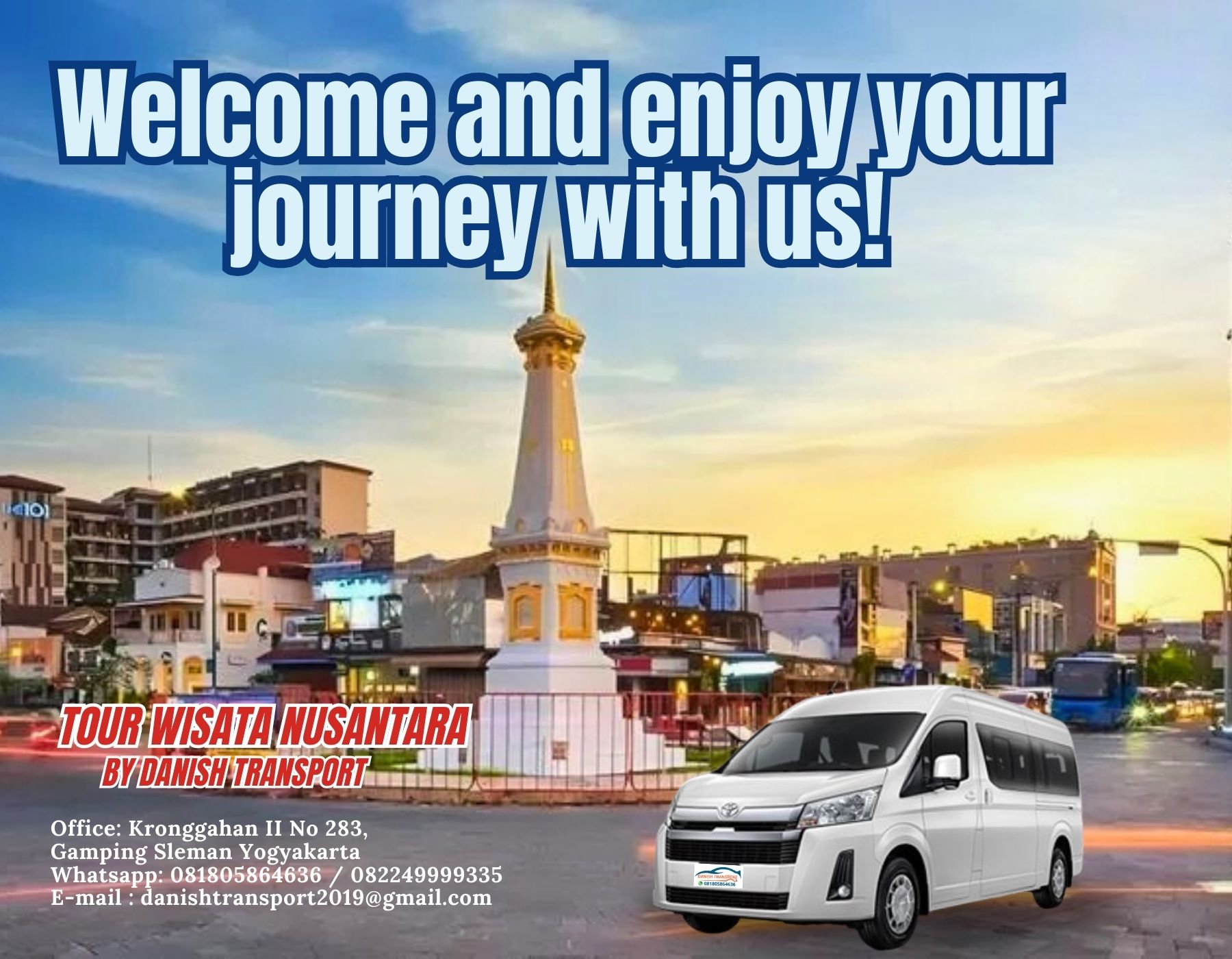 Danish Transport adalah layanan sewa transportasi terpercaya yang telah melayani pelanggan sejak tahun 2014. Dengan pengalaman lebih dari 10 tahun, kami berkomitmen memberikan pelayanan terbaik melalui armada yang terawat dan driver profesional.
